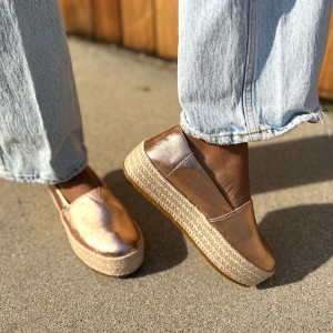 Valencia Rose Gold Metallic Nappa Leather Platform Espadrille