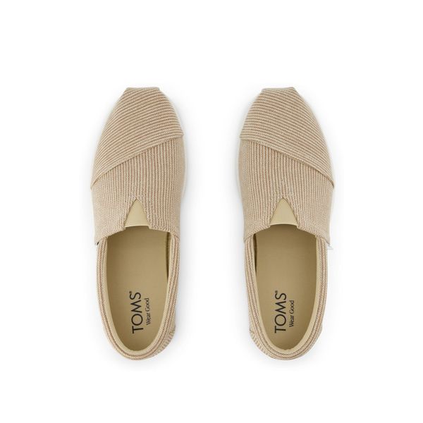 Alp FWD slip-ons with signature TOMS style, now available in a subtle stripe textile for added texture. Easygoing and casual, they pair well with jeans, tees and everything in between. Finished with cushy CloudBound™ insoles.Textile upper with stripe detailing.