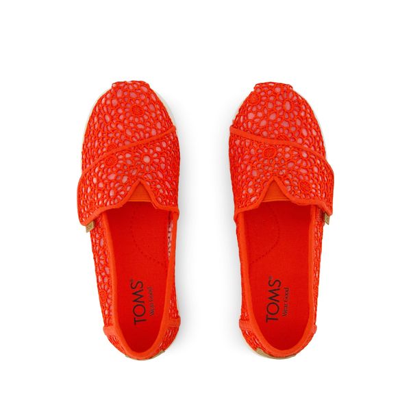 Flame Moroccan Crochet, 10022092TOMS run true to size and are available in medium width only. We recommend ordering the size you normally wear. If you are typically in between sizes, we recommend going with the smaller one since TOMS will stretch slightly as you break them in.