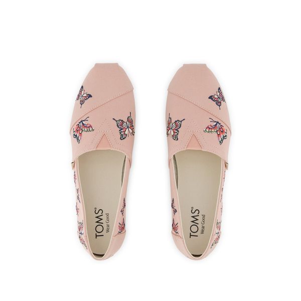 Pale Rose Canvas with Embroidered Butterflies, 10022829TOMS run true to size and are available in medium width only. We recommend ordering the size you normally wear. If you are typically in between sizes, we recommend going with the smaller one since TOMS will stretch slightly as you break them in.
