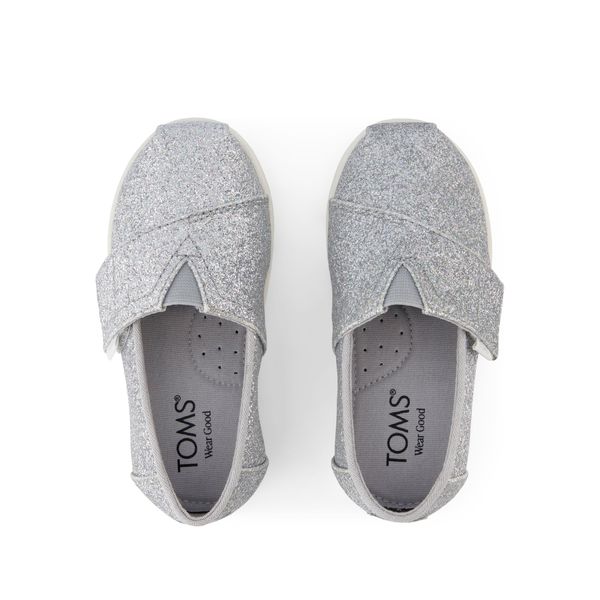 Silver Iridescent Glimmer, 10022111TOMS run true to size and are available in medium width only. We recommend ordering the size you normally wear. If you are typically in between sizes, we recommend going with the smaller one since TOMS will stretch slightly as you break them in.