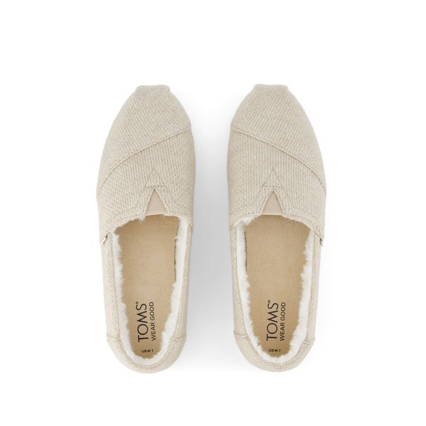 Oatmeal Sparkle Knit Faux Fur, 10021708TOMS run true to size and are available in medium width only. We recommend ordering the size you normally wear. If you are typically in between sizes, we recommend going with the smaller one since TOMS will stretch slightly as you break them in.