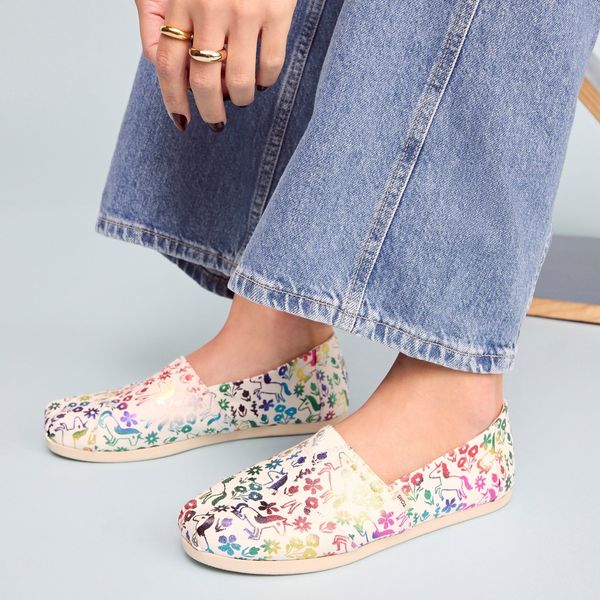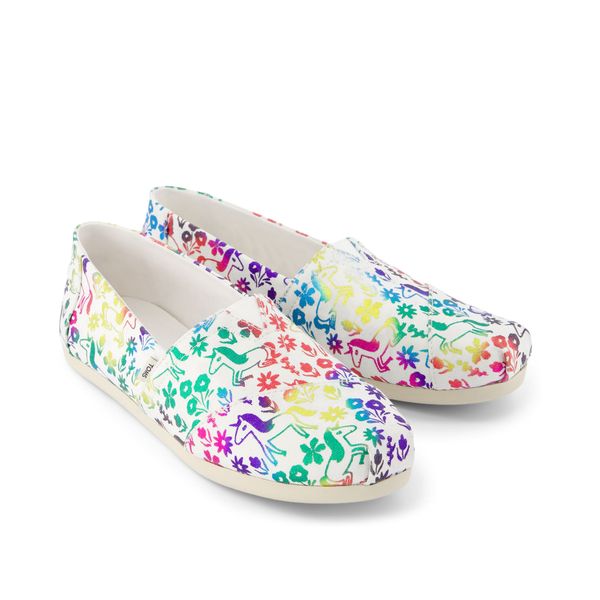 Rainbow Unicorns, 10021670TOMS run true to size and are available in medium width only. We recommend ordering the size you normally wear. If you are typically in between sizes, we recommend going with the smaller one since TOMS will stretch slightly as you break them in.