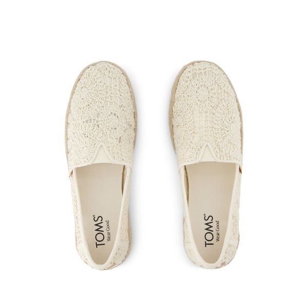 Natural Crochet Lace, 10021941TOMS run true to size and are available in medium width only. We recommend ordering the size you normally wear. If you are typically in between sizes, we recommend going with the smaller one since TOMS will stretch slightly as you break them in.