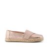Pale Rose Metallic Iridescent PU, 10022086TOMS run true to size and are available in medium width only. We recommend ordering the size you normally wear. If you are typically in between sizes, we recommend going with the smaller one since TOMS will stretch slightly as you break them in.