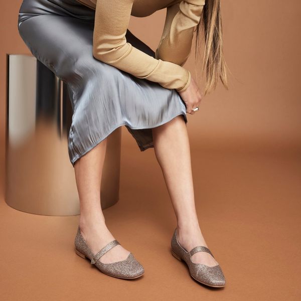 Elegance made easy. The Bianca square-toe mary janes feature champagne rainbow glitter uppers and a mini heel for added height and style. Wear with tights and a dress, or a pair of jeans. Comfortable CloudBound™ insoles ground the look.Glitter leather uppers. TOMS leather products support responsible manufacturing via the Leather Working Group.