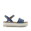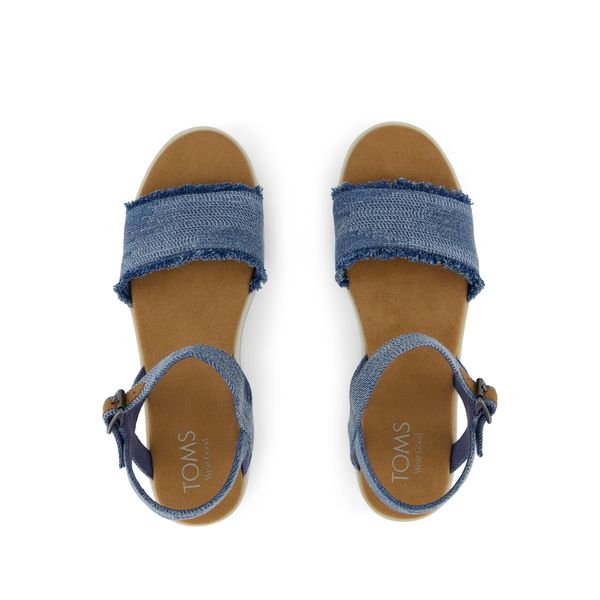 Our Brynn sandal features the added height we know you love, a strappy design for comfortable style and a sawtooth bottom for no-slip grip. Pair with flowy dresses or cropped denim for anything on your warm-weather agenda. Denim upper with fray detailing.