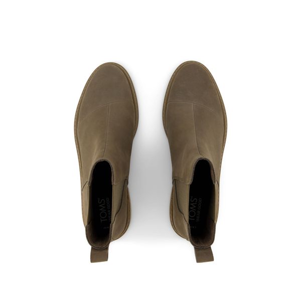 The Chelsea boot that gives back. With a classic silhouette, canteen-green Nubuck leather uppers and CloudBound™ insoles, the Charlie ankle boot brings a classic and comfortable look to any outfit—from slacks and jeans to skirts and dresses.Nubuck leather uppers. TOMS leather products support responsible manufacturing via the Leather Working Group.