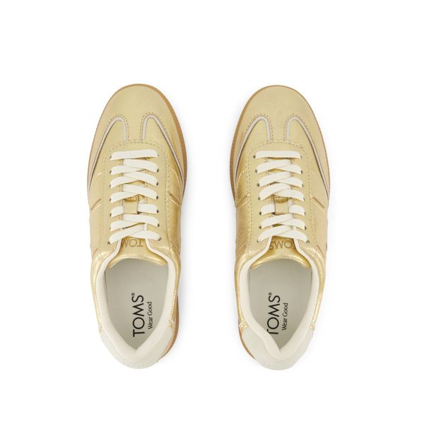 Your new favorite everyday sneaker. Collins blends effortless style with on-the-go comfort. Featuring feminine scalloped edge details and standout metallic gold leather uppers that pop with all your favorite looks, plus cushy CloudBound™ insoles for all-day support. Metallic leather upper. TOMS leather products support responsible manufacturing via the Leather Working Group.