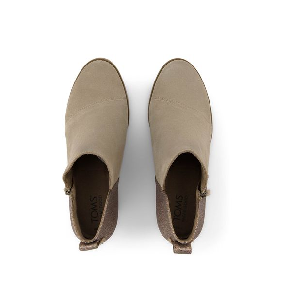 Simple yet stunning, the Goldie ankle boot has gold metallic uppers offset with glittery metallic leather and a two-inch wedge heel for the perfect amount of lift. A side zipper, pull tab and CloudBound™ insoles ensure an easy, comfortable fit.Leather uppers. TOMS leather products support responsible manufacturing via the Leather Working Group.
