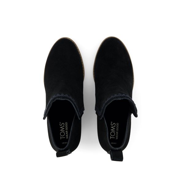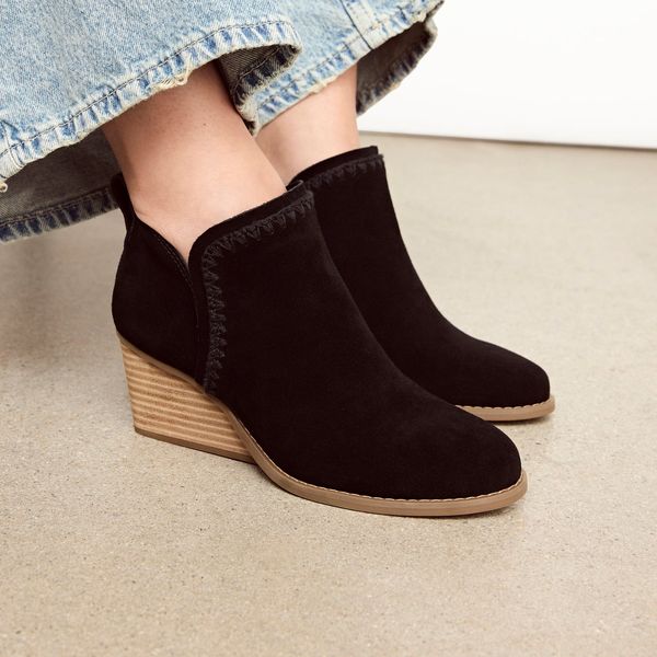 Elevate your look with the Kaia ankle boot – literally! Featuring a wedge heel and standout silhouette, this Kaia promises classic style with a modern twist. The black Nubuck leather uppers pair perfectly with dresses and jeans, while CloudBound™ insoles ensure lasting comfort and support.Suede uppers. TOMS leather products support responsible manufacturing via the Leather Working Group.