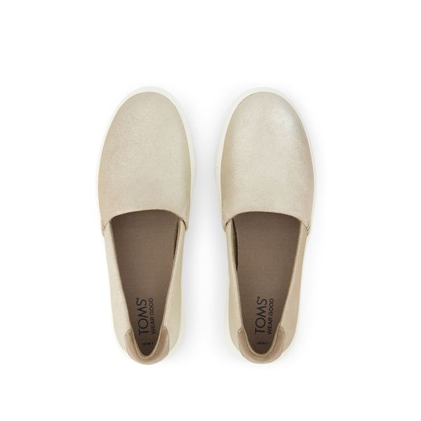 Champagne Metallic Suede, 10021441TOMS run true to size and are available in medium width only. We recommend ordering the size you normally wear. If you are typically in between sizes, we recommend going with the smaller one since TOMS will stretch slightly as you break them in.