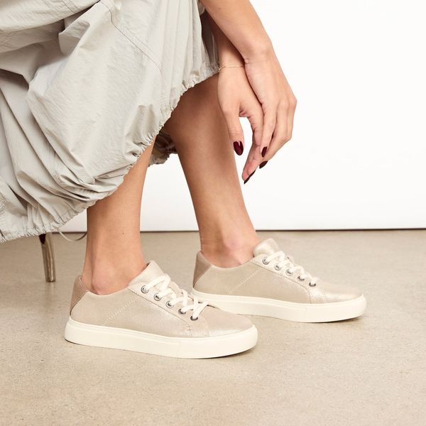 Kameron: a shiny new shoe. This lace-up sneaker packs comfort and style into a sporty silhouette. Metallic suede uppers add sophistication, while comfy CloudBound™ insoles support each step. Dress up with a skirt or down in denim.Metallic suede uppers. TOMS leather products support responsible manufacturing via the Leather Working Group.