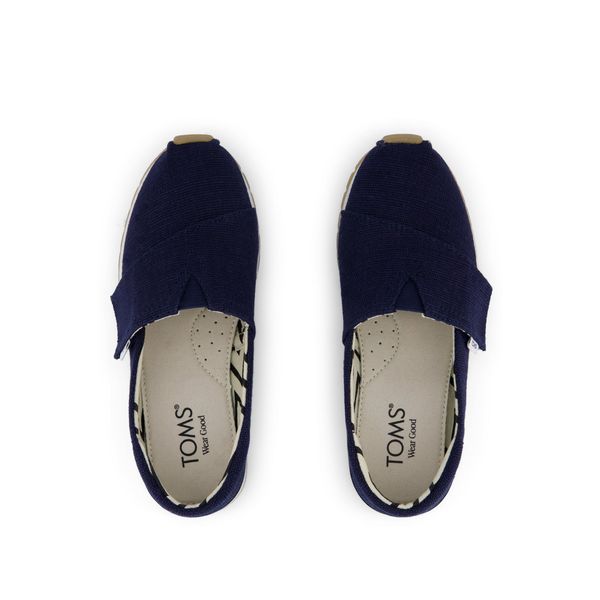 Navy Heritage Canvas, 10022774TOMS run true to size and are available in medium width only. We recommend ordering the size you normally wear. If you are typically in between sizes, we recommend going with the smaller one since TOMS will stretch slightly as you break them in.