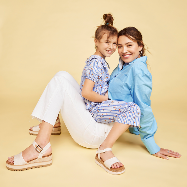 The cutest espadrille sandal for your little. Our adorable Diana is packed with ultra-comfy details like an open-toe style, secure ankle strap, sawtooth rubber grip, and lightweight midsole. It’s perfect for warm-weather walking! Style these versatile sandals for kids with anything, and even get a matching pair for mom!Yarn dyed textile upper.