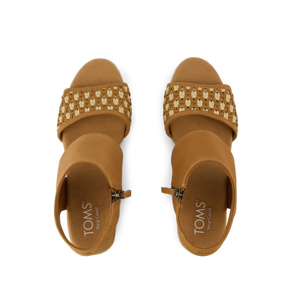 Our Majorca Platform sandal is an elevated essential. Designed with a chic to-the-floor rope wrap and luxe basket-woven upper details, plus comfort features like the block heel and wide straps. Add height and femininity to all your favorite looks. Geo basket-woven PU and leather upper. TOMS leather products support responsible manufacturing via the Leather Working Group.