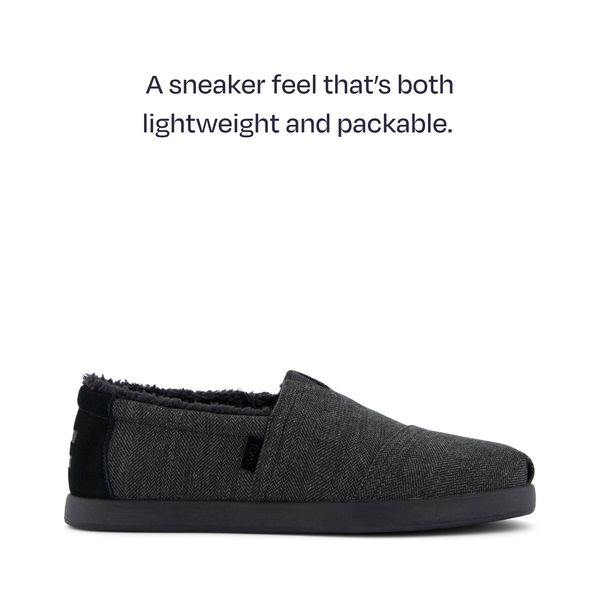 Impactful Alpargata slip-ons with signature TOMS style, now in charcoal with textural herringbone uppers. Casual and easygoing, they pair well with jeans, tees and everything in between. Finished with cushy CloudBound™ insoles for all-day comfort.Herringbone uppers.