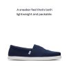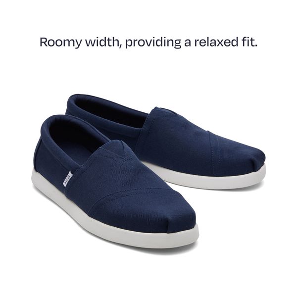 Navy Recycled Cotton Canvas, 10019858TOMS run true to size and are available in medium width only. We recommend ordering the size you normally wear. If you are typically in between sizes, we recommend going with the smaller one since TOMS will stretch slightly as you break them in.