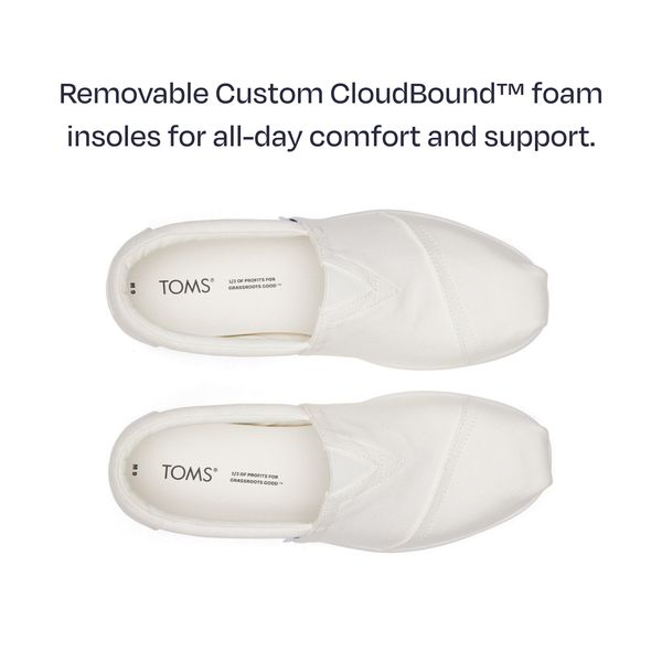 White Recycled Cotton Canvas, 10019876TOMS run true to size and are available in medium width only. We recommend ordering the size you normally wear. If you are typically in between sizes, we recommend going with the smaller one since TOMS will stretch slightly as you break them in.