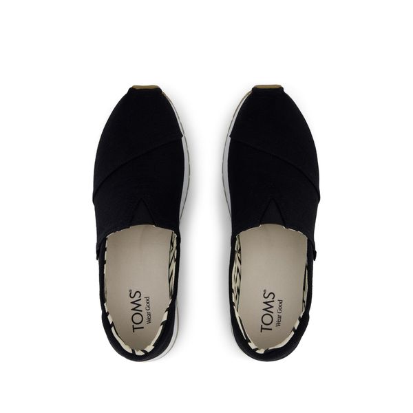Black Heritage Canvas, 10022778TOMS run true to size and are available in medium width only. We recommend ordering the size you normally wear. If you are typically in between sizes, we recommend going with the smaller one since TOMS will stretch slightly as you break them in.