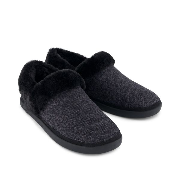 Cozy up with the Oslo slipper. Faux-fur lining offers a layer of warmth and comfort, while stylish black herringbone uppers bring fun visual interest. Memory foam insoles provide long-lasting comfort and support with each step.Herringbone textile uppers.