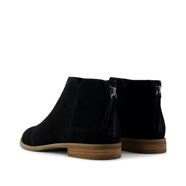 Elegance and ease – all in one. The Rylie is an elegant, easy-on ankle bootie featuring soft black suede uppers and a handy heel zip. Featuring CloudBound™ insoles, this latest style promises all-day comfort – perfect for everything from shopping to work to dinner dates.Suede uppers. TOMS leather products support responsible manufacturing via the Leather Working Group.