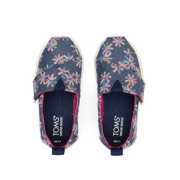 Navy Embroidered Floral, 10020623TOMS run true to size and are available in medium width only. We recommend ordering the size you normally wear. If you are typically in between sizes, we recommend going with the smaller one since TOMS will stretch slightly as you break them in.