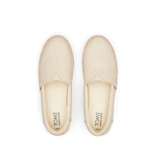 Natural Undyed Metallic Linen Stripe , 10020710TOMS run true to size and are available in medium width only. We recommend ordering the size you normally wear. If you are typically in between sizes, we recommend going with the smaller one since TOMS will stretch slightly as you break them in.