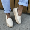 Your favorite platform espadrille, now in linen with metallic stripe details. Featuring a sleek silhouette, chic rope-wrapped detailing, and an improved fit. The Valencia is ready to take you from work to the weekend with comfort and style. Linen textile upper with metallic foil detailing.