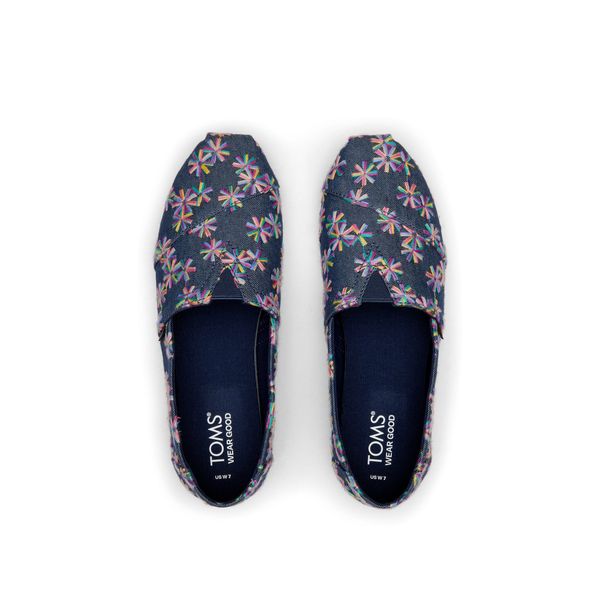 Embroidered Floral Navy, 10020650TOMS run true to size and are available in medium width only. We recommend ordering the size you normally wear. If you are typically in between sizes, we recommend going with the smaller one since TOMS will stretch slightly as you break them in.