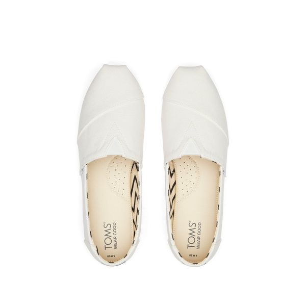 White Recycled Cotton Canvas, 10017739TOMS run true to size and are available in medium width only. We recommend ordering the size you normally wear. If you are typically in between sizes, we recommend going with the smaller one since TOMS will stretch slightly as you break them in.