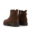Meet the utility-inspired boot with a polished aesthetic. Astrid is a durable and lightweight lug boot with sophisticated details like a soft suede upper, cozy knit gore and decorative leather strap with pin hardware details. An effortless style for every day. Suede upper. TOMS leather products support responsible manufacturing via the Leather Working Group.