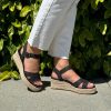 Your elevated sandal staple: our mid-height Audrey wedge. Featuring ultra-feminine design details like to-the-floor rope wrap, glimmering metallic pops, and a chic ankle strap buckle. Achieve effortless elegance from seaside vacations to outdoor weddings and beyond.Linen upper with metallic stripe detailing.