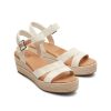 Your elevated sandal staple: our mid-height Audrey wedge linen sandals. Featuring ultra-feminine design details like to-the-floor rope wrap, glimmering metallic pops that go beyond basic beige, and a chic ankle strap buckle. Achieve effortless elegance and look stylish from seaside vacations to outdoor weddings and keep comfortable every step of the way.Linen upper with metallic stripe detailing.