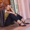 Womens Jaclyn Heel Black Woven Basket Faux Leather