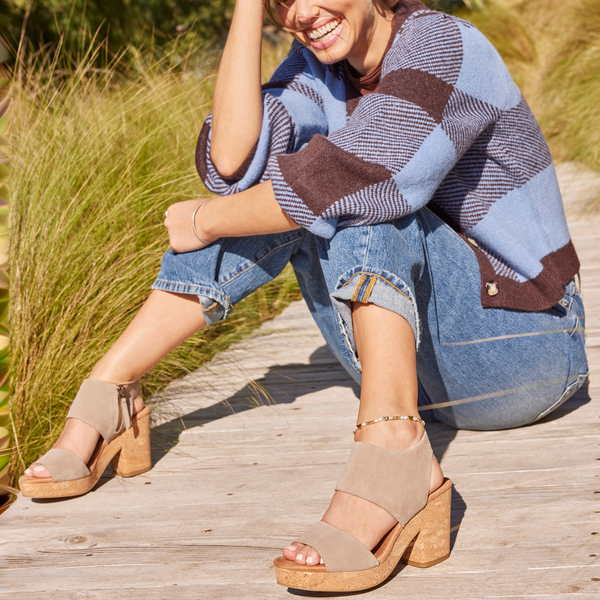 Our Majorca platform sandal is a casual closet staple built for comfort and versatility. Designed with a cool and transitional cork sole wrap, an ultra-walkable block heel, and wide straps for a secure fit. Elevate any dress or jeans look with this sophisticated pair of suede cork sandals.Suede upper. TOMS leather products support responsible manufacturing via the Leather Working Group.