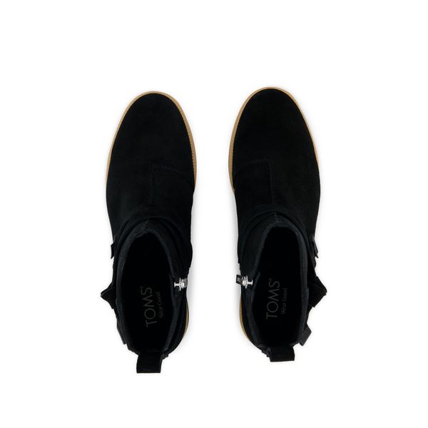 Marlow is your new low wedge boot for effortless, everyday style. Featuring a sleek, water-repellent suede upper with a matching wraparound tie for added dimension and interest. With a 1 ½ inch heel height and lug bottom, you get the perfect amount of lift without sacrificing function. Water-repellent suede upper. TOMS leather products support responsible manufacturing via the Leather Working Group.