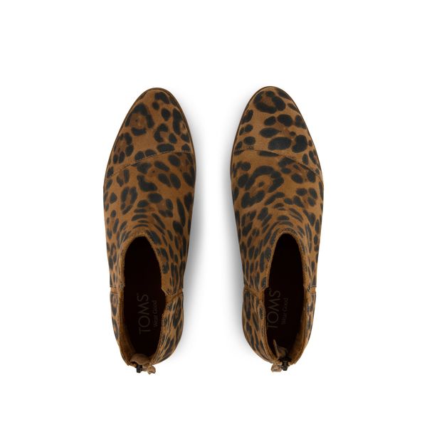 Stylish simplicity. The Rylie is a sleek, everyday ankle bootie designed with leopard-print suede uppers for a pop of personality, a handy heel zip for easy on/off and CloudBound™ insoles for all-day comfort. Leopard-print suede uppers. TOMS leather products support responsible manufacturing via the Leather Working Group.
