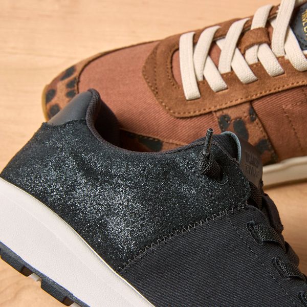 New to our TRVL LITE collection: the sporty and minimalist Cabrillo sneaker. This versatile tennis shoe features stretch laces for easy on and off, plus Scotchgarded uppers to repel water and stains. Casual comfort for days on the go. Vintage twill and suede upper. TOMS leather products support responsible manufacturing via the Leather Working Group.