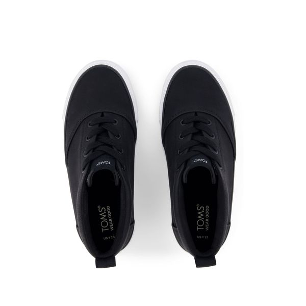 Simple, stylish and comfortable, this kids’ Alpargata slip-on is crafted of super-soft black microsuede with matching laces and a crisp white rubber midsole. A heel tab makes them easy to slip on and lace up.Microsuede uppers. TOMS leather products support responsible manufacturing via the Leather Working Group.